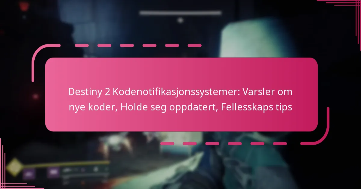 Kodenotifikasjonssystemer i Destiny 2 har som hovedformål å holde spillere oppdatert om kampanjekoder som kan forbedre spillopplevelsen deres. Disse kodene gir ofte in-game gjenstander, valuta eller spesielle hendelser som kan ha betydelig innvirkning på spillingen.