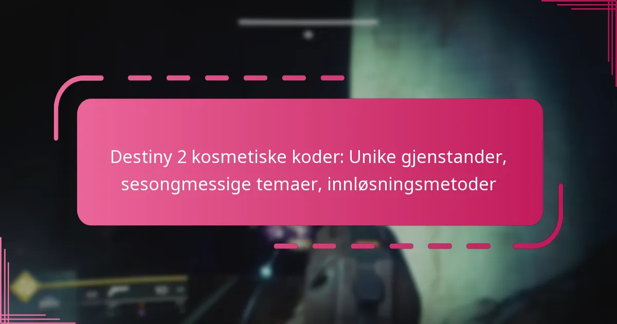 Destiny 2 har et variert utvalg av sesongmessige temaer som reflekteres i sine kosmetiske koder, og tilbyr spillere unike gjenstander som samsvarer med den nåværende narrativen og hendelsene. Hver sesong introduserer distinkte estetiske elementer og motiver, som forbedrer den totale spillopplevelsen.