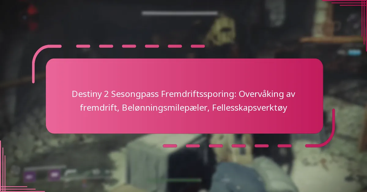Å overvåke fremgangen din i Destiny 2 Season Pass innebærer å bruke ulike indikatorer i spillet og tredjepartsverktøy for å spore fremgangen din mot belønninger. Ved å forstå nøkkelmetrikker og fokusere på daglige og ukentlige milepæler kan du effektivt administrere spillingen din og maksimere belønningene dine.