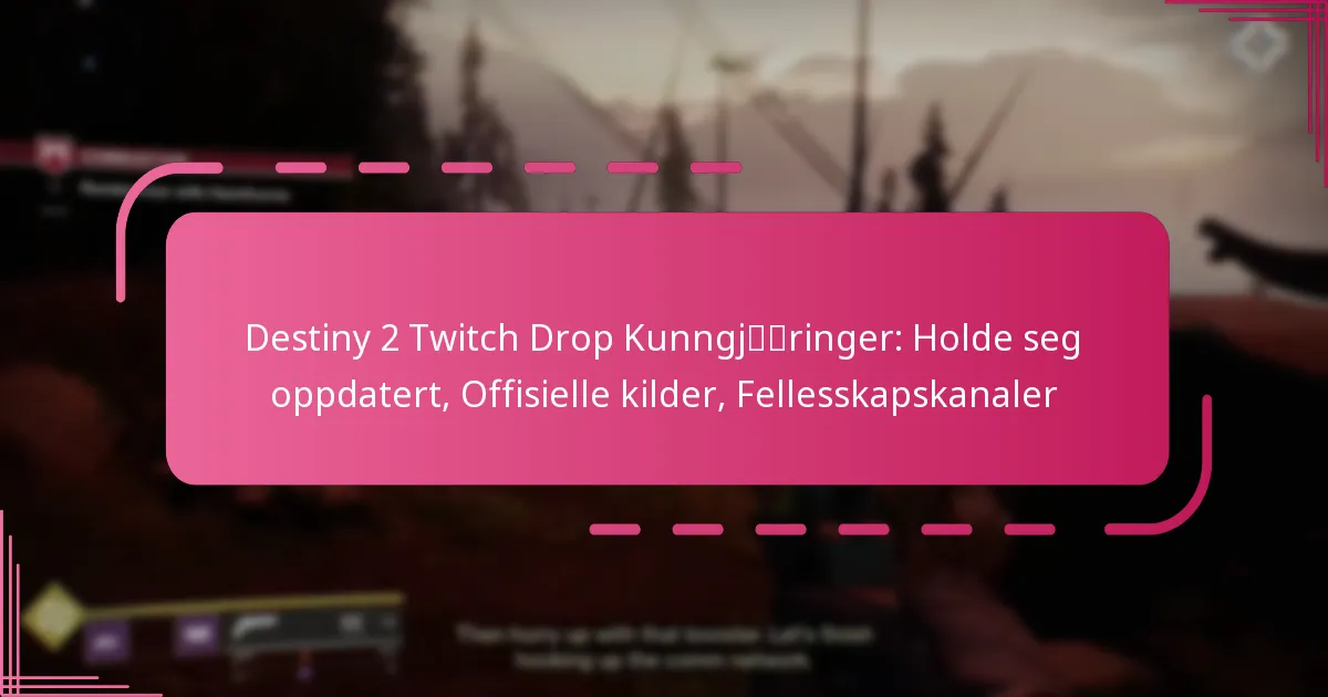Destiny 2 Twitch Drops gir spillere spennende belønninger i spillet for å se bestemte Twitch-strømmer, og fremmer fellesskapsengasjement. For å holde deg oppdatert på kunngjøringer, er det viktig å følge offisielle kilder og fellesskapskanaler, samt bruke sosiale medier for sanntidsvarsler. Å engasjere seg med populære streamere kan ytterligere øke sjansene dine for å tjene disse eksklusive belønningene.