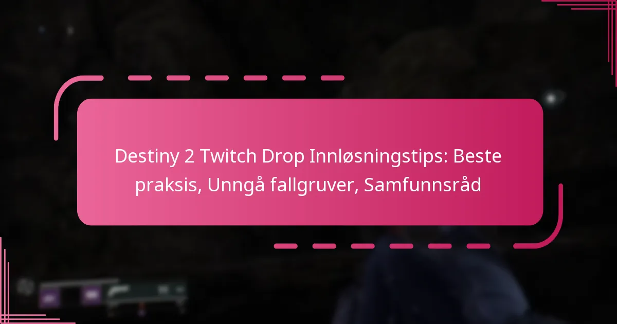 For å lykkes med å kreve Destiny 2 Twitch Drops, er det viktig å følge noen beste praksiser. Dette inkluderer å koble kontoene dine riktig, velge populære streamere, og være klar over den nødvendige visningsvarigheten. I tillegg kan det å verifisere berettigelsen din og holde oversikt over drop-skjemaer forbedre sjansene dine for å motta belønninger.